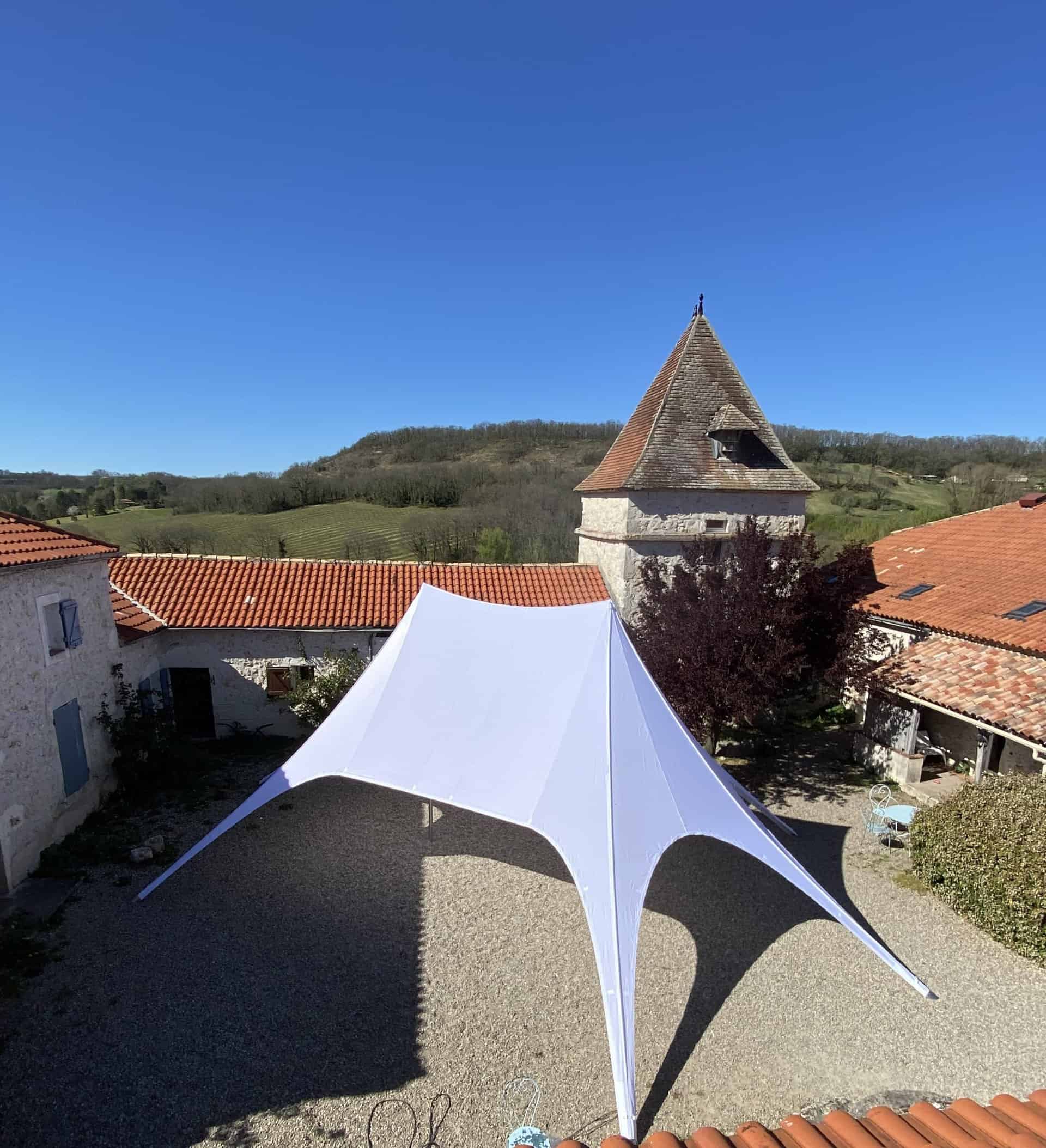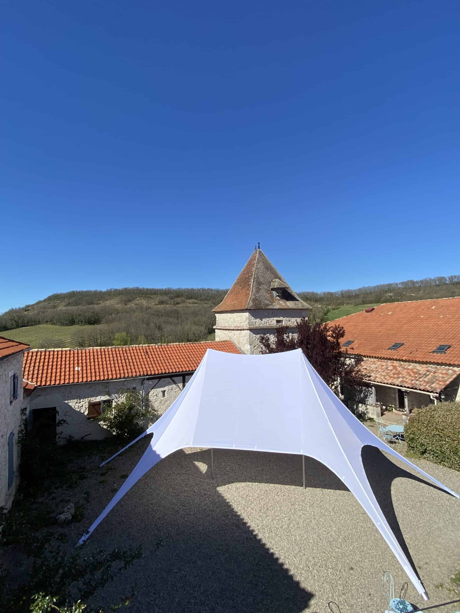 Loin de la simple tente utilitaire, cette nouvelle structure a été choisie pour son design soigné et sa parfaite intégration au style du Domaine. Avec sa forme originale et sa silhouette élégante, elle ne se contente pas d’abriter : elle sublime l’espace, créant une atmosphère chaleureuse, protégée, mais toujours en lien avec le charme des extérieurs.